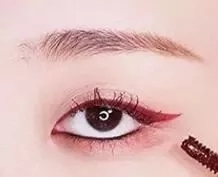STEP4:在上眼睑画上酒红色的上扬眼线。