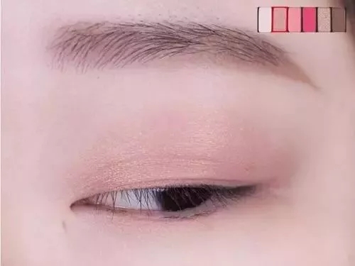 Step2:用浅粉色眼影在上眼睑大面积晕染。