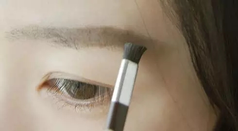 眉粉对于清新自然的裸妆来说,眉笔的化妆痕迹过于明显,用眉刷将 自然、颜色浅一号的眉粉轻轻刷在眉毛的尾部,只许按照原有的眉形淡淡描画,不必刻意修饰。