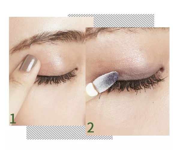 STEP 1:眼部的底妆很重要,用浅珠光色的眼影点到眼窝中,以自然的光泽提亮眼部神采,眼睛看起来很有精神。