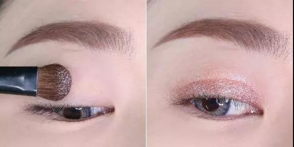 Step1:画上棕色眉毛,然后用浅色眼影在眼部涂抹,打底。
