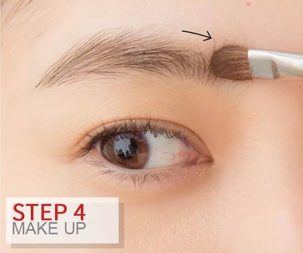 3平眉刷:从黑眼珠上方开始向眉尾涂刷,顺着眉毛的方向,和眉毛的形状刷。